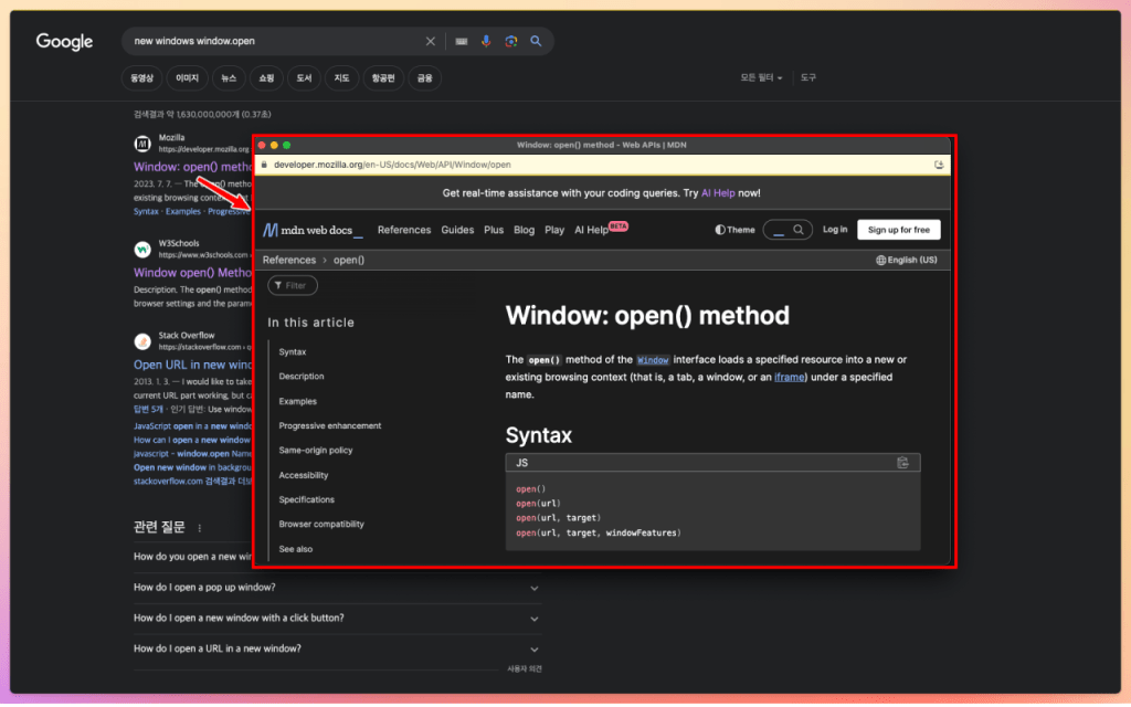 구글 검색 후, 검색 결과가 본창에서 뜨는게 무척이나 싫고